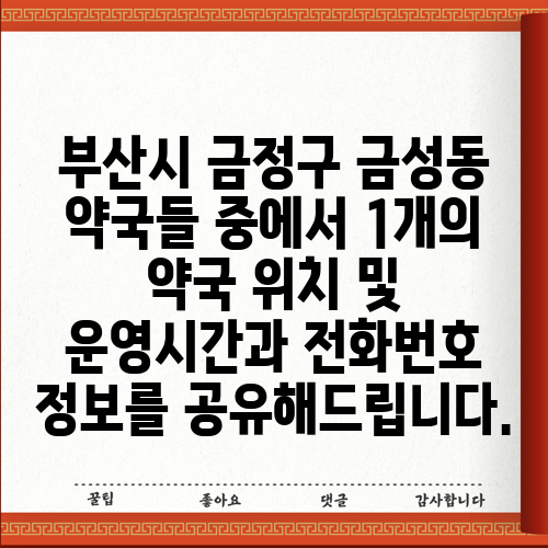 부산시 금정구 금성동 약국들 중에서 1개의 약국 위치 및 운영시간과 전화번호 정보를 공유해드립니다.