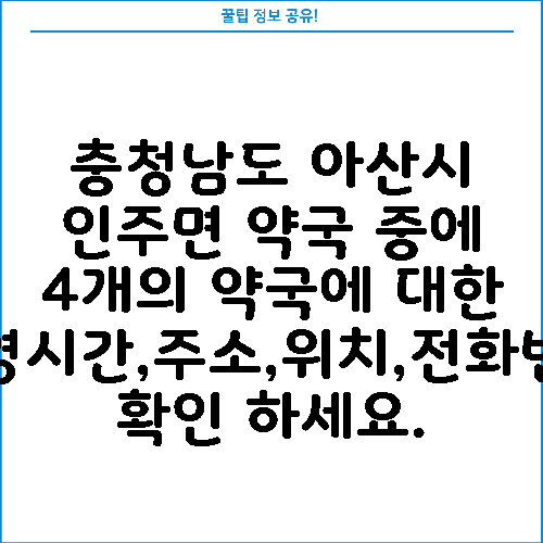 충청남도 아산시 인주면 약국 중에 4개의 약국에 대한 운영시간,주소,위치,전화번호 확인 하세요.