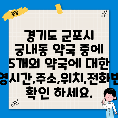 경기도 군포시 궁내동 약국 중에 5개의 약국에 대한 운영시간,주소,위치,전화번호 확인 하세요.