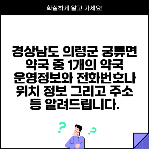 경상남도 의령군 궁류면 약국 중 1개의 약국 운영정보와 전화번호나 위치 정보 그리고 주소 등 알려드립니다.