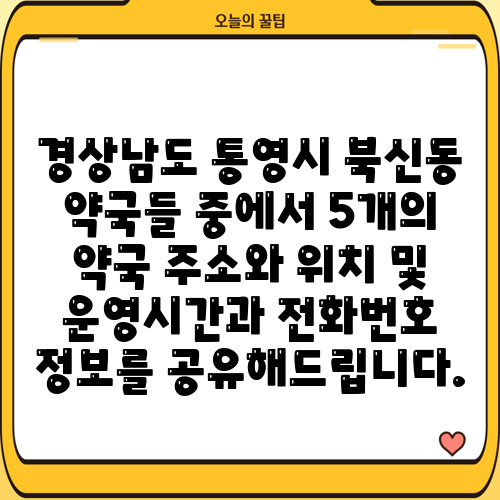 경상남도 통영시 북신동 약국들 중에서 5개의 약국 주소와 위치 및 운영시간과 전화번호 정보를 공유해드립니다.