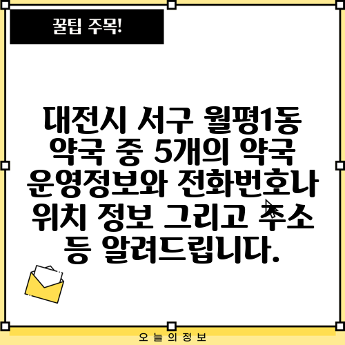 대전시 서구 월평1동 약국 중 5개의 약국 운영정보와 전화번호나 위치 정보 그리고 주소 등 알려드립니다.