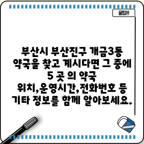 부산시 부산진구 개금3동 약국을 찾고 계시다면 그 중에 5 곳 의 약국 위치,운영시간,전화번호 등 기타 정보를 함께 알아보세요.