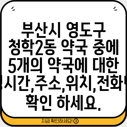 부산시 영도구 청학2동 약국 중에 5개의 약국에 대한 운영시간,주소,위치,전화번호 확인 하세요.