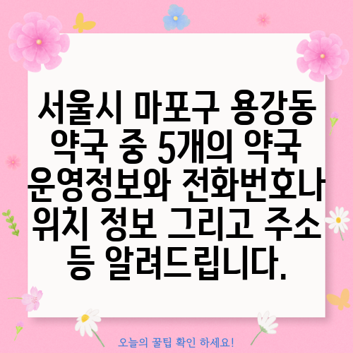 서울시 마포구 용강동 약국 중 5개의 약국 운영정보와 전화번호나 위치 정보 그리고 주소 등 알려드립니다.