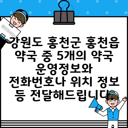 강원도 홍천군 홍천읍 약국 중 5개의 약국 운영정보와 전화번호나 위치 정보 등 전달해드립니다.