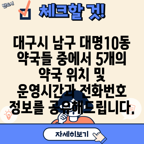 대구시 남구 대명10동 약국들 중에서 5개의 약국 위치 및 운영시간과 전화번호 정보를 공유해드립니다.