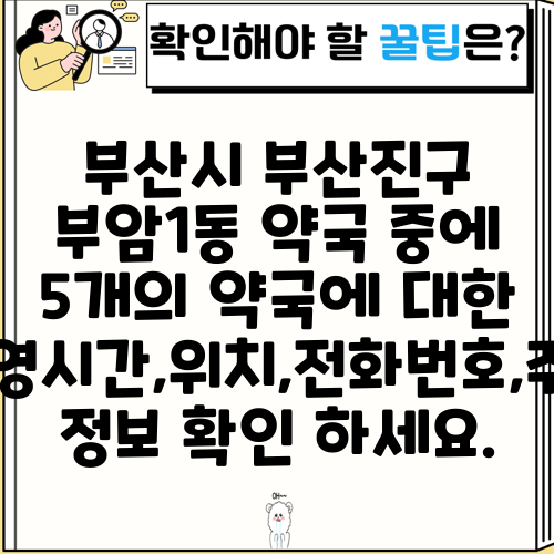 부산시 부산진구 부암1동 약국 중에 5개의 약국에 대한 운영시간,위치,전화번호,주소 정보 확인 하세요.