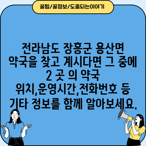 전라남도 장흥군 용산면 약국을 찾고 계시다면 그 중에 2 곳 의 약국 위치,운영시간,전화번호 등 기타 정보를 함께 알아보세요.