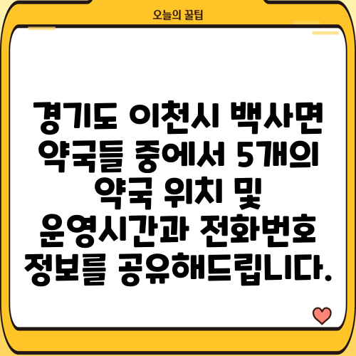경기도 이천시 백사면 약국들 중에서 5개의 약국 위치 및 운영시간과 전화번호 정보를 공유해드립니다.
