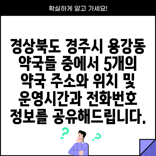 경상북도 경주시 용강동 약국들 중에서 5개의 약국 주소와 위치 및 운영시간과 전화번호 정보를 공유해드립니다.