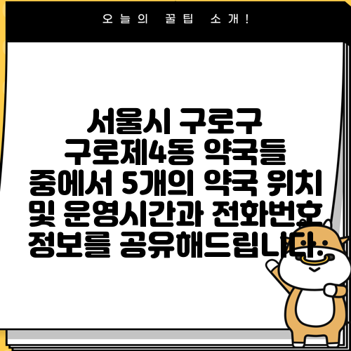 서울시 구로구 구로제4동 약국들 중에서 5개의 약국 위치 및 운영시간과 전화번호 정보를 공유해드립니다.