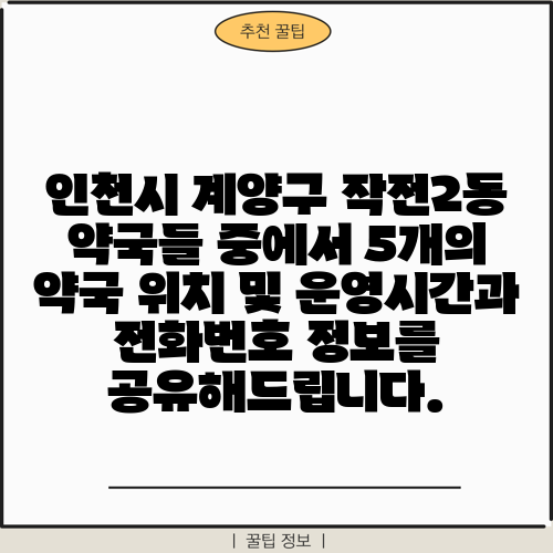 인천시 계양구 작전2동 약국들 중에서 5개의 약국 위치 및 운영시간과 전화번호 정보를 공유해드립니다.