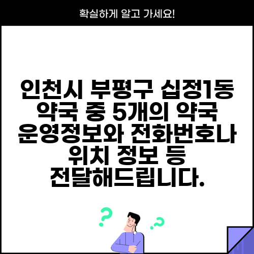 인천시 부평구 십정1동 약국 중 5개의 약국 운영정보와 전화번호나 위치 정보 등 전달해드립니다.
