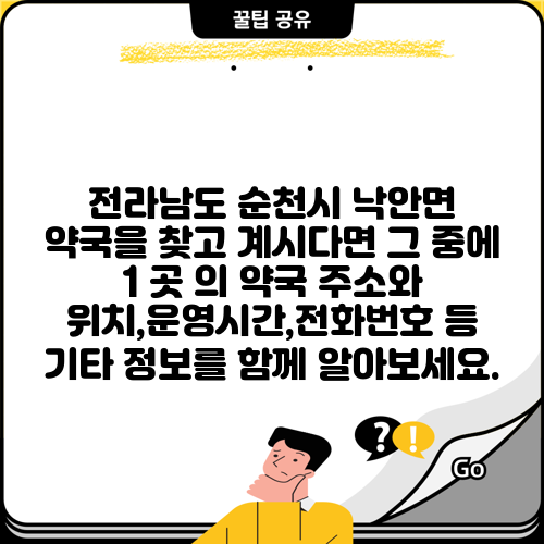 전라남도 순천시 낙안면 약국을 찾고 계시다면 그 중에 1 곳 의 약국 주소와 위치,운영시간,전화번호 등 기타 정보를 함께 알아보세요.