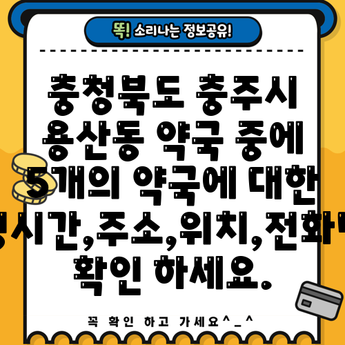 충청북도 충주시 용산동 약국 중에 5개의 약국에 대한 운영시간,주소,위치,전화번호 확인 하세요.