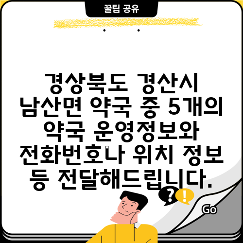 경상북도 경산시 남산면 약국 중 5개의 약국 운영정보와 전화번호나 위치 정보 등 전달해드립니다.
