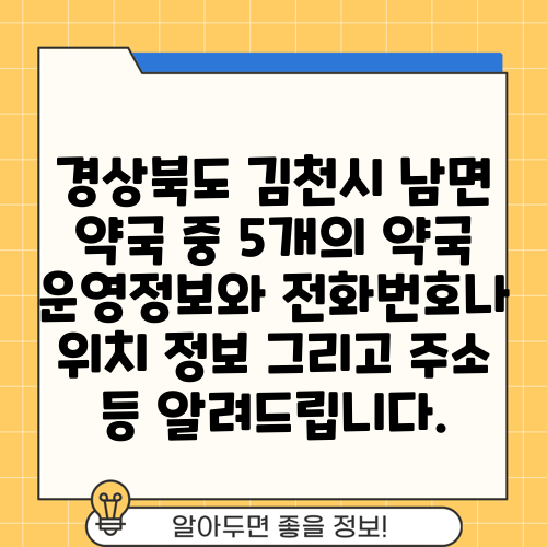 경상북도 김천시 남면 약국 중 5개의 약국 운영정보와 전화번호나 위치 정보 그리고 주소 등 알려드립니다.
