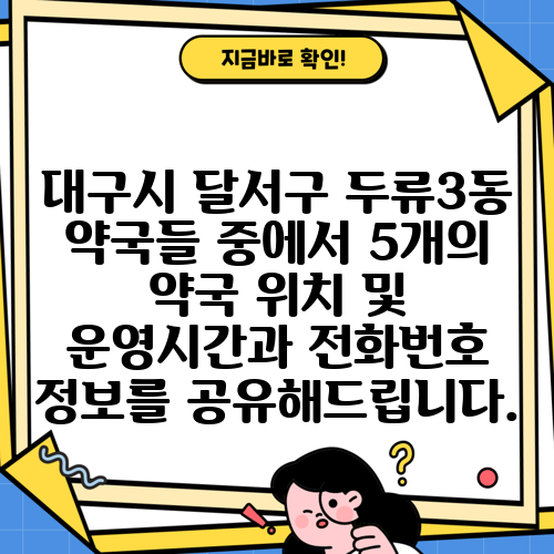 대구시 달서구 두류3동 약국들 중에서 5개의 약국 위치 및 운영시간과 전화번호 정보를 공유해드립니다.