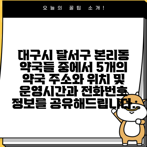대구시 달서구 본리동 약국들 중에서 5개의 약국 주소와 위치 및 운영시간과 전화번호 정보를 공유해드립니다.