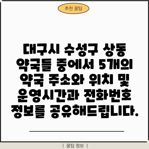 대구시 수성구 상동 약국들 중에서 5개의 약국 주소와 위치 및 운영시간과 전화번호 정보를 공유해드립니다.