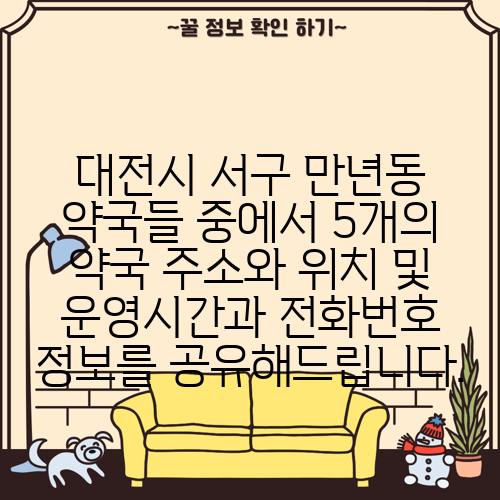 대전시 서구 만년동 약국들 중에서 5개의 약국 주소와 위치 및 운영시간과 전화번호 정보를 공유해드립니다.