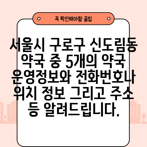 서울시 구로구 신도림동 약국 중 5개의 약국 운영정보와 전화번호나 위치 정보 그리고 주소 등 알려드립니다.