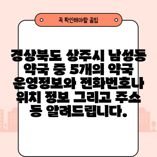 경상북도 상주시 남성동 약국 중 5개의 약국 운영정보와 전화번호나 위치 정보 그리고 주소 등 알려드립니다.