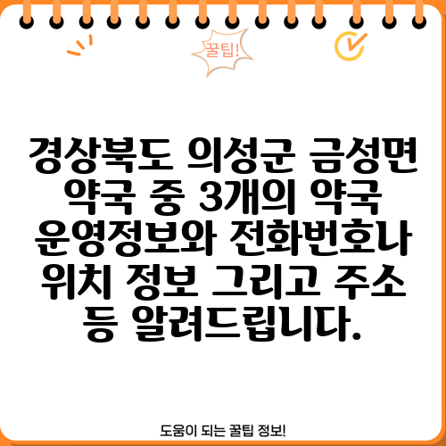 경상북도 의성군 금성면 약국 중 3개의 약국 운영정보와 전화번호나 위치 정보 그리고 주소 등 알려드립니다.