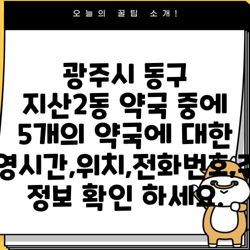 광주시 동구 지산2동 약국 중에 5개의 약국에 대한 운영시간,위치,전화번호,주소 정보 확인 하세요.