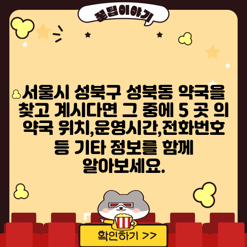 서울시 성북구 성북동 약국을 찾고 계시다면 그 중에 5 곳 의 약국 위치,운영시간,전화번호 등 기타 정보를 함께 알아보세요.