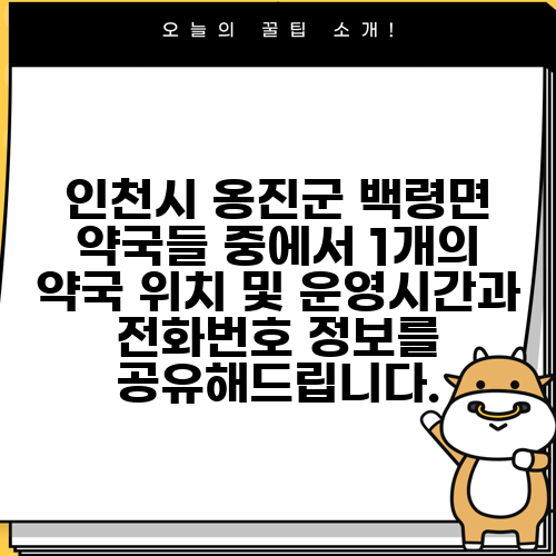 인천시 옹진군 백령면 약국들 중에서 1개의 약국 위치 및 운영시간과 전화번호 정보를 공유해드립니다.