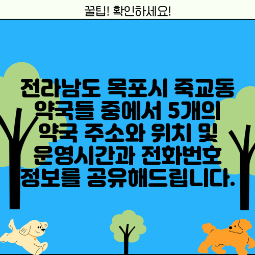 전라남도 목포시 죽교동 약국들 중에서 5개의 약국 주소와 위치 및 운영시간과 전화번호 정보를 공유해드립니다.