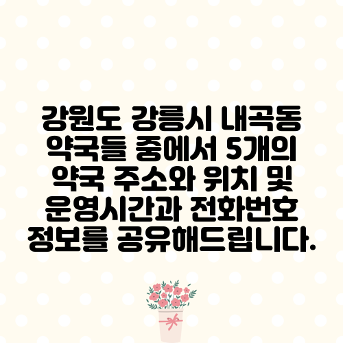 강원도 강릉시 내곡동 약국들 중에서 5개의 약국 주소와 위치 및 운영시간과 전화번호 정보를 공유해드립니다.