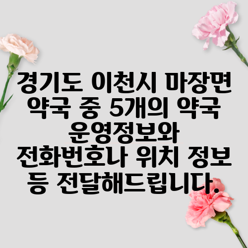 경기도 이천시 마장면 약국 중 5개의 약국 운영정보와 전화번호나 위치 정보 등 전달해드립니다.