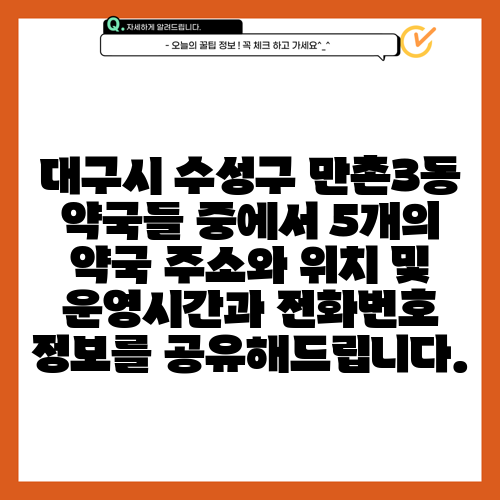 대구시 수성구 만촌3동 약국들 중에서 5개의 약국 주소와 위치 및 운영시간과 전화번호 정보를 공유해드립니다.