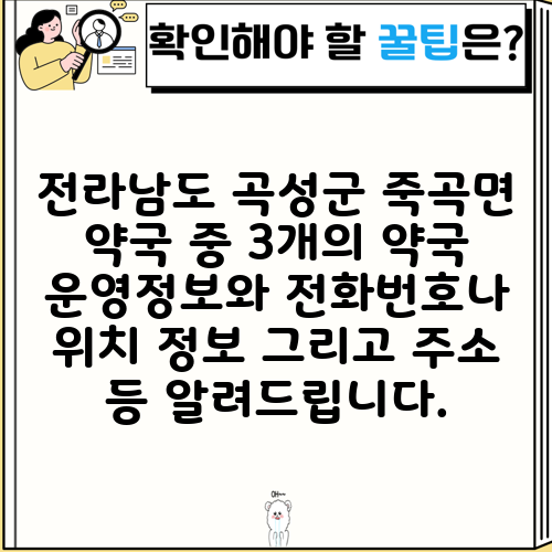 전라남도 곡성군 죽곡면 약국 중 3개의 약국 운영정보와 전화번호나 위치 정보 그리고 주소 등 알려드립니다.