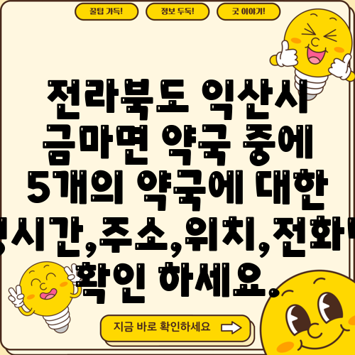 전라북도 익산시 금마면 약국 중에 5개의 약국에 대한 운영시간,주소,위치,전화번호 확인 하세요.