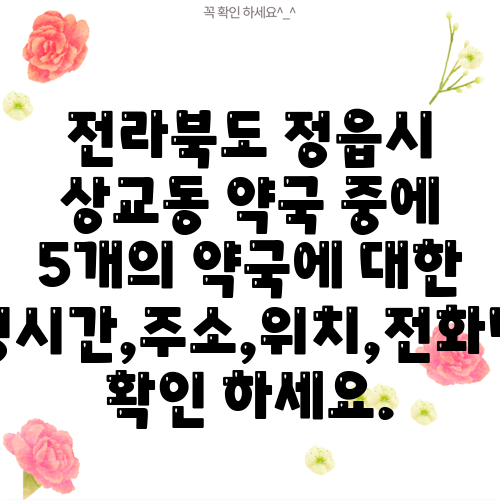 전라북도 정읍시 상교동 약국 중에 5개의 약국에 대한 운영시간,주소,위치,전화번호 확인 하세요.