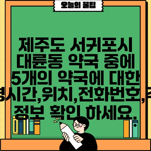 제주도 서귀포시 대륜동 약국 중에 5개의 약국에 대한 운영시간,위치,전화번호,주소 정보 확인 하세요.