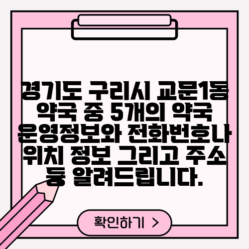 경기도 구리시 교문1동 약국 중 5개의 약국 운영정보와 전화번호나 위치 정보 그리고 주소 등 알려드립니다.