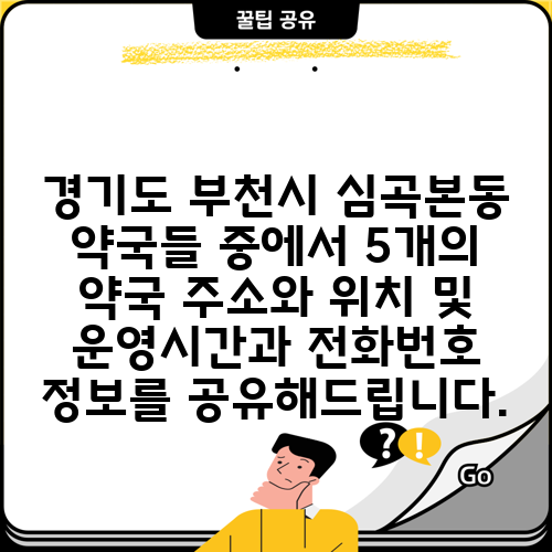 경기도 부천시 심곡본동 약국들 중에서 5개의 약국 주소와 위치 및 운영시간과 전화번호 정보를 공유해드립니다.