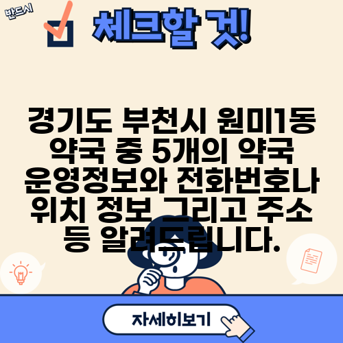 경기도 부천시 원미1동 약국 중 5개의 약국 운영정보와 전화번호나 위치 정보 그리고 주소 등 알려드립니다.