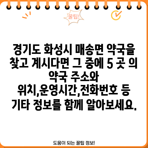 경기도 화성시 매송면 약국을 찾고 계시다면 그 중에 5 곳 의 약국 주소와 위치,운영시간,전화번호 등 기타 정보를 함께 알아보세요.