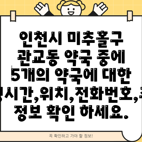 인천시 미추홀구 관교동 약국 중에 5개의 약국에 대한 운영시간,위치,전화번호,주소 정보 확인 하세요.