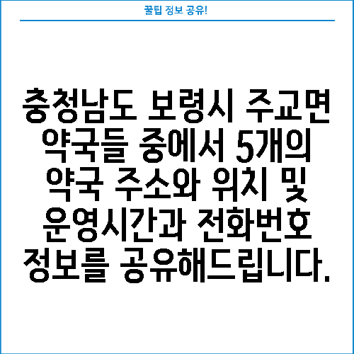 충청남도 보령시 주교면 약국들 중에서 5개의 약국 주소와 위치 및 운영시간과 전화번호 정보를 공유해드립니다.