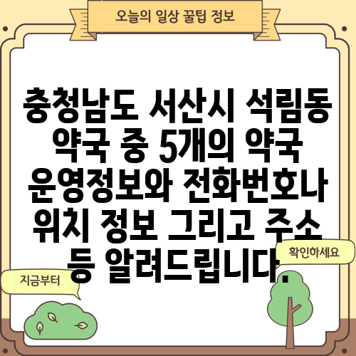 충청남도 서산시 석림동 약국 중 5개의 약국 운영정보와 전화번호나 위치 정보 그리고 주소 등 알려드립니다.