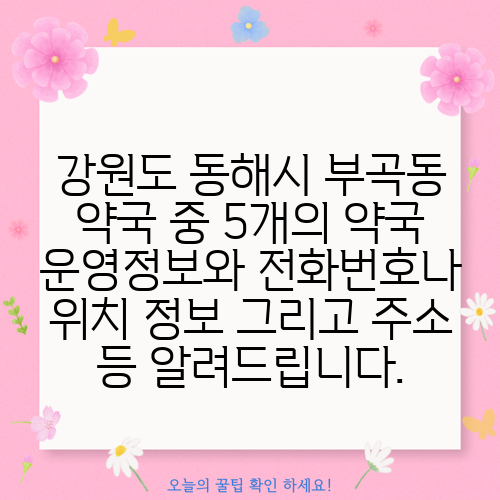 강원도 동해시 부곡동 약국 중 5개의 약국 운영정보와 전화번호나 위치 정보 그리고 주소 등 알려드립니다.