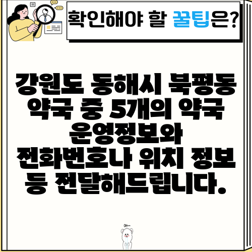 강원도 동해시 북평동 약국 중 5개의 약국 운영정보와 전화번호나 위치 정보 등 전달해드립니다.