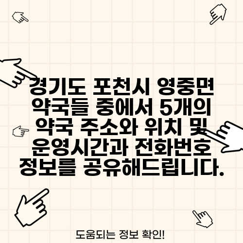 경기도 포천시 영중면 약국들 중에서 5개의 약국 주소와 위치 및 운영시간과 전화번호 정보를 공유해드립니다.